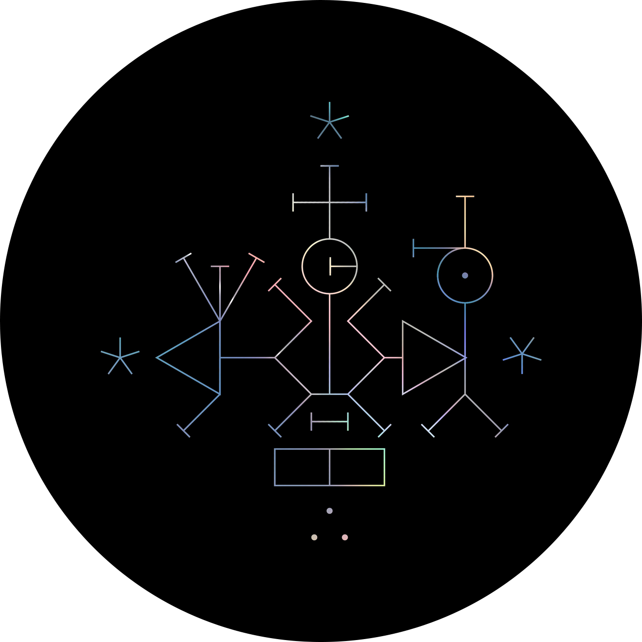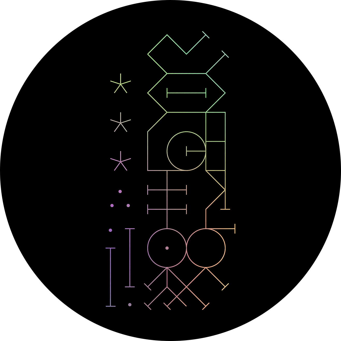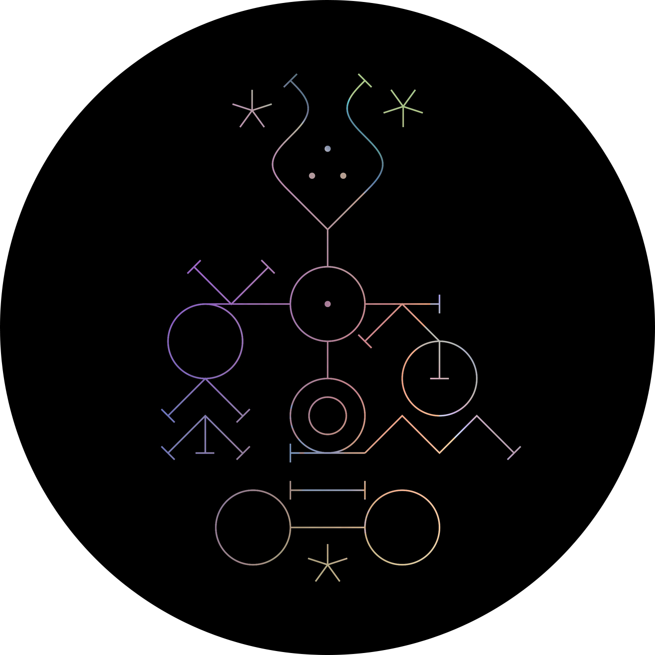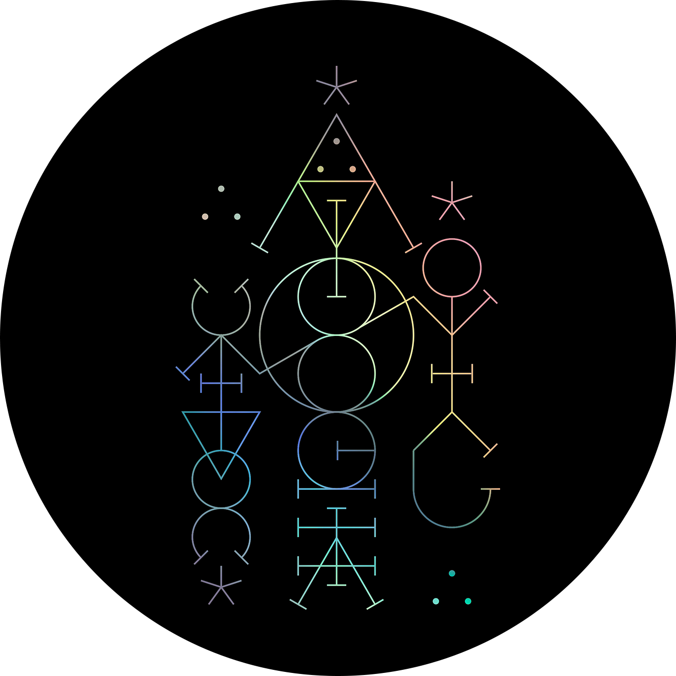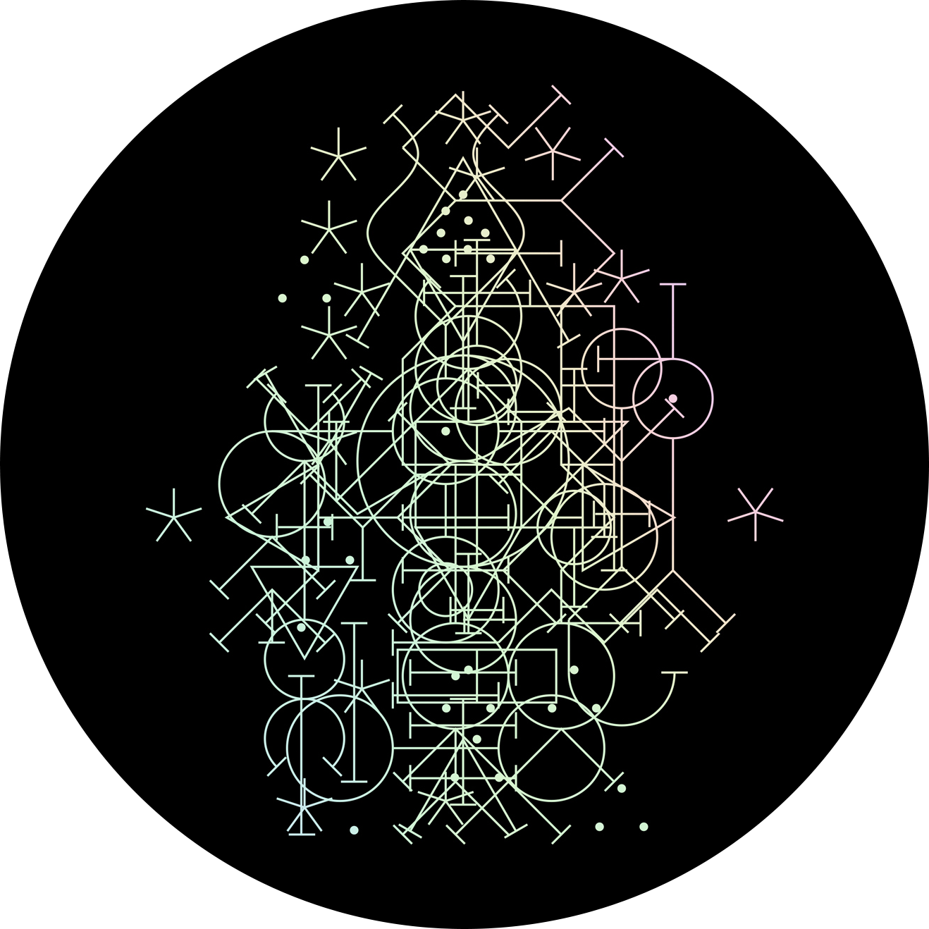 BOUGENE is a digital-age Gesamtkunstwerk — five sonic invocations, each with its own composition, sigil, and diagram. This fusion of sound design, illustration, and performative gesture forms the prototype and aesthetic nucleus of an experimental game in development for A MAZE Festival 2026 — a ritual in audiovisual form, exploring sound as a medium of metamorphosis and rebirth.
