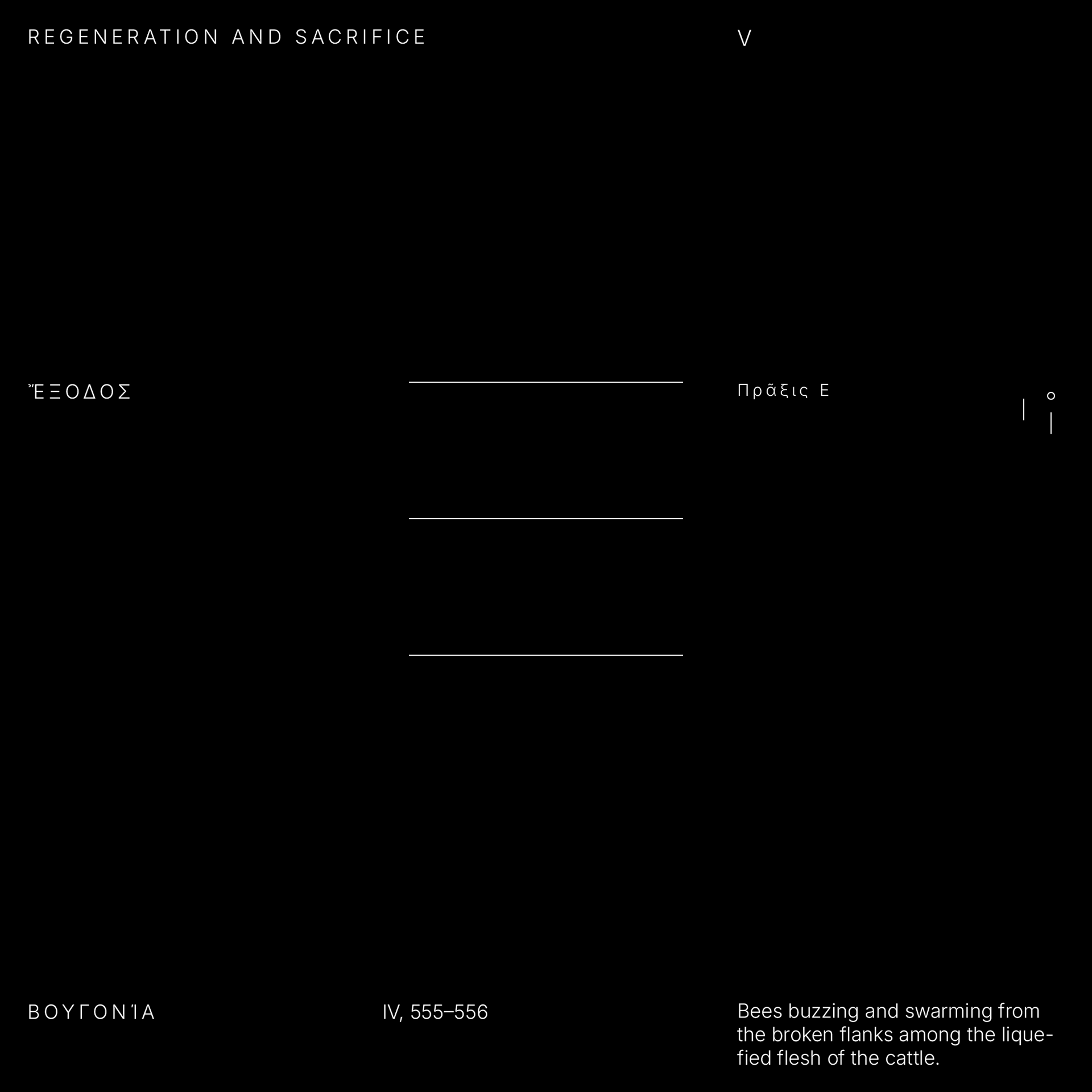 Praxis E • Exodos • Regeneration and Sacrifice (Bugonia)