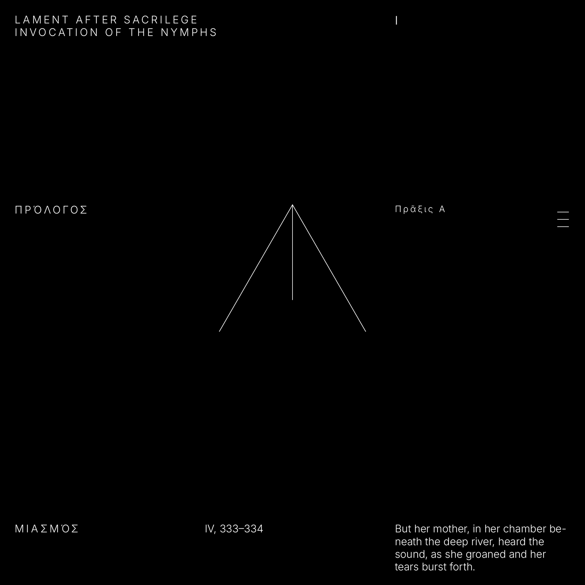 Praxis A • Prologos / Parodos • Lament after Sacrilege / Invocation of the Nymphs (Miasmos)
